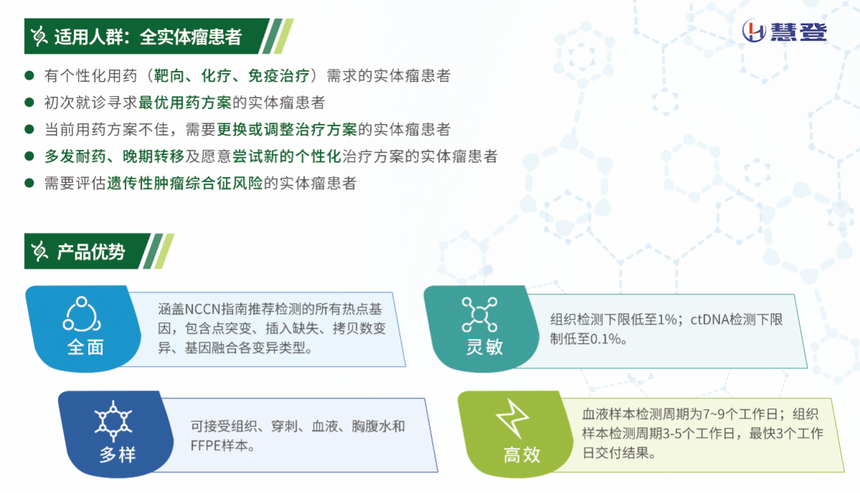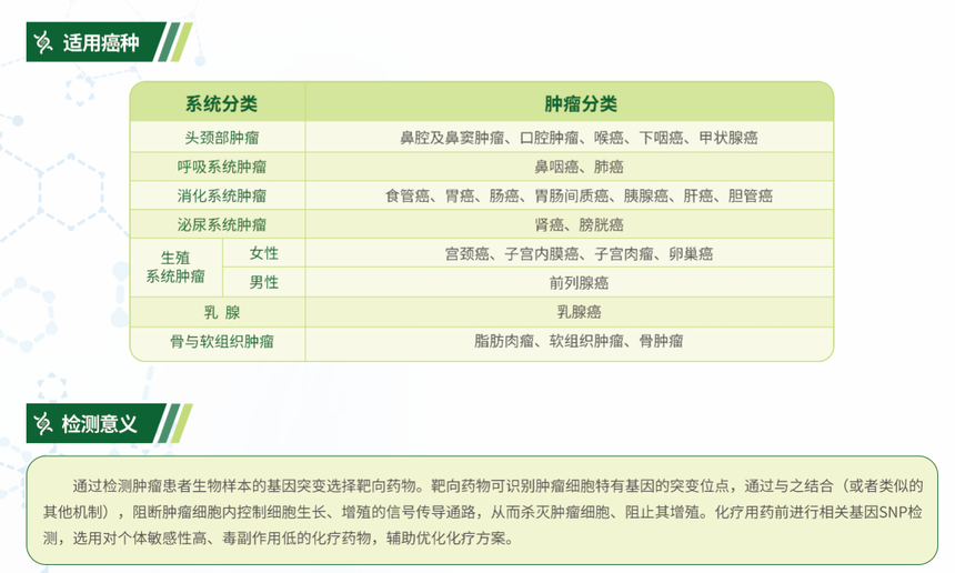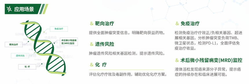 實體瘤 580 基因檢測產(chǎn)品采用高通量測序技術(shù),檢測實體瘤靶向治療、免疫治療、化療和遺傳風(fēng)險相關(guān)的 580 個基因,全面評估 130 余種靶向藥物和30 余種化療藥物單藥及聯(lián)合治療方案療效,同時通過微衛(wèi)星不穩(wěn)定(MSI)、腫瘤突變負(fù)荷(TMB)、腫瘤新抗原預(yù)測以及免疫系統(tǒng)相關(guān)基因檢測評估免疫治療療效;評估近百種家族性遺傳腫瘤綜合征風(fēng)險。